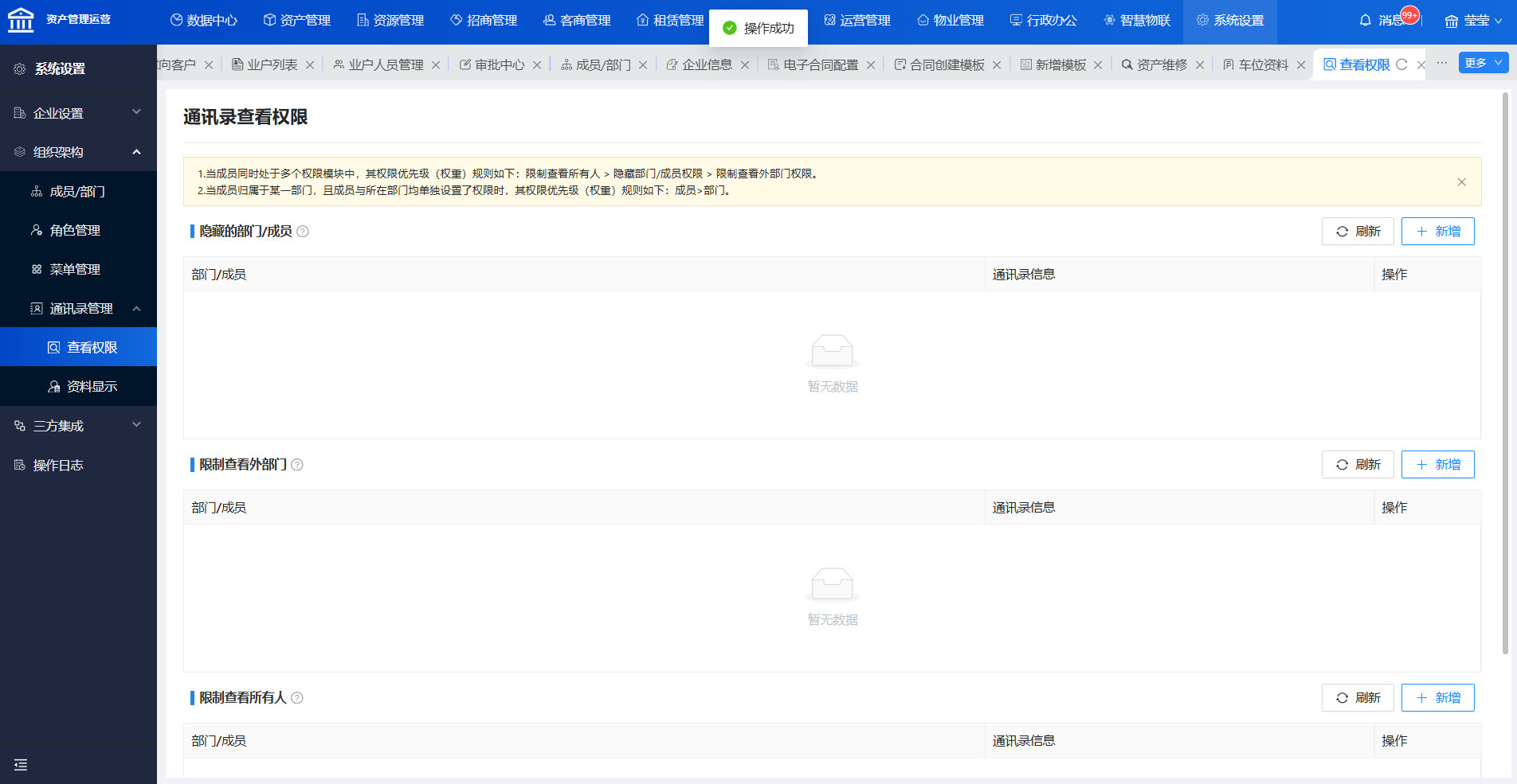 本月我们进行了系统升级和优化,为企业带来了更多便捷的新功能和体验优化。本次升级优化涉及组织架构、业户管理、合同管理、固定资产等多项功能。此次升级旨在进一步提升楼宇运营管理的效率与智能化水平,让操作更加便捷、高效。